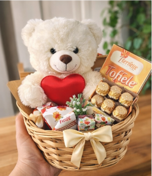 -5% Cesta Romântica com Pelúcia e Chocolates